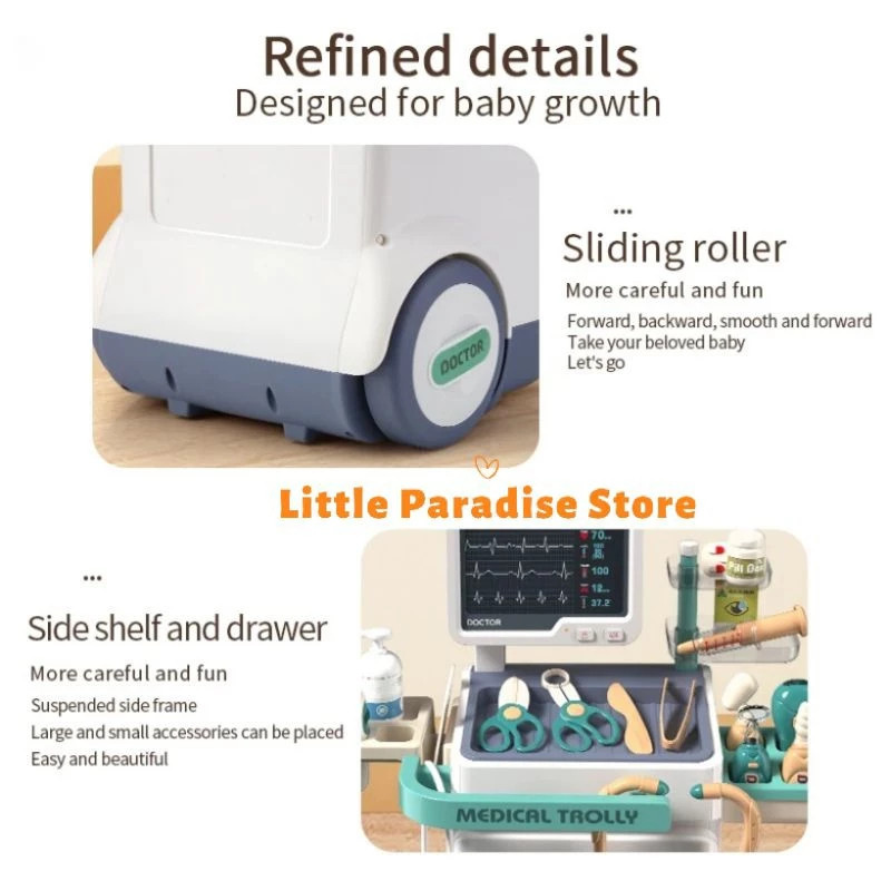 JIQILE Mainan dokter dokteran anak 115CM pretend play anak trolly mainan doctor komplit set toy mainan doctor komplit