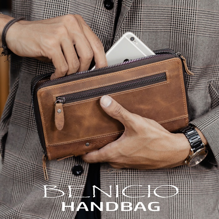 Benicio Handbag Clutch Pria Kulit Sapi Asli Tas Tangan Cowok Keren Orginal Lokal Brand New Series