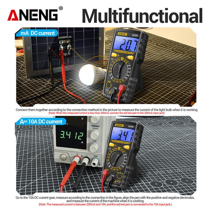 Aneng SZ306 Digital Multimeters Testers AC/DC Voltage Diode Test Buzzer 10A Current