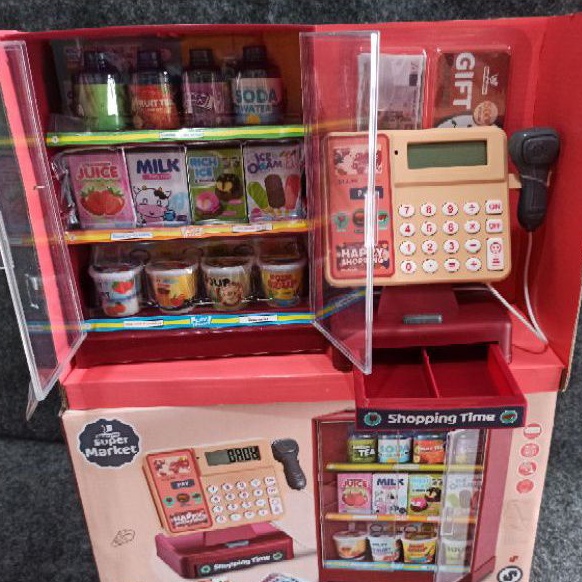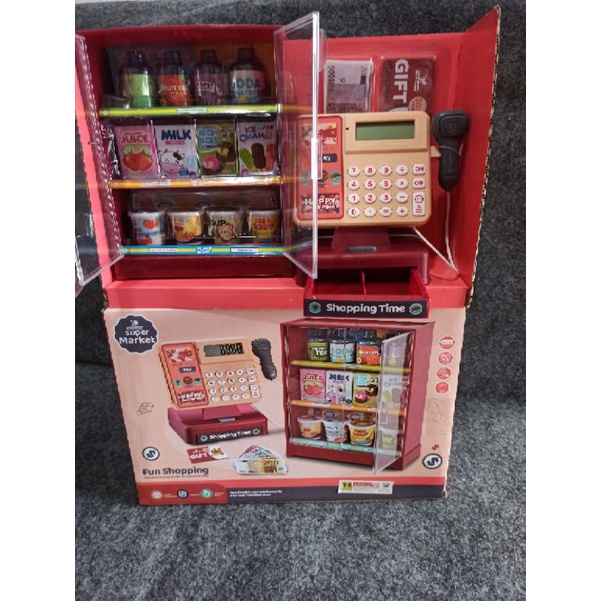 Mainan anak kasir kasiran register happy shopping supermarket with etalase