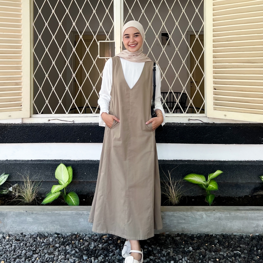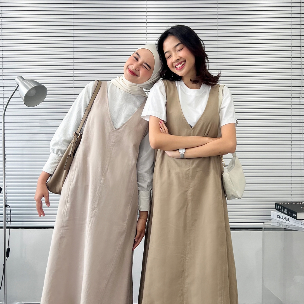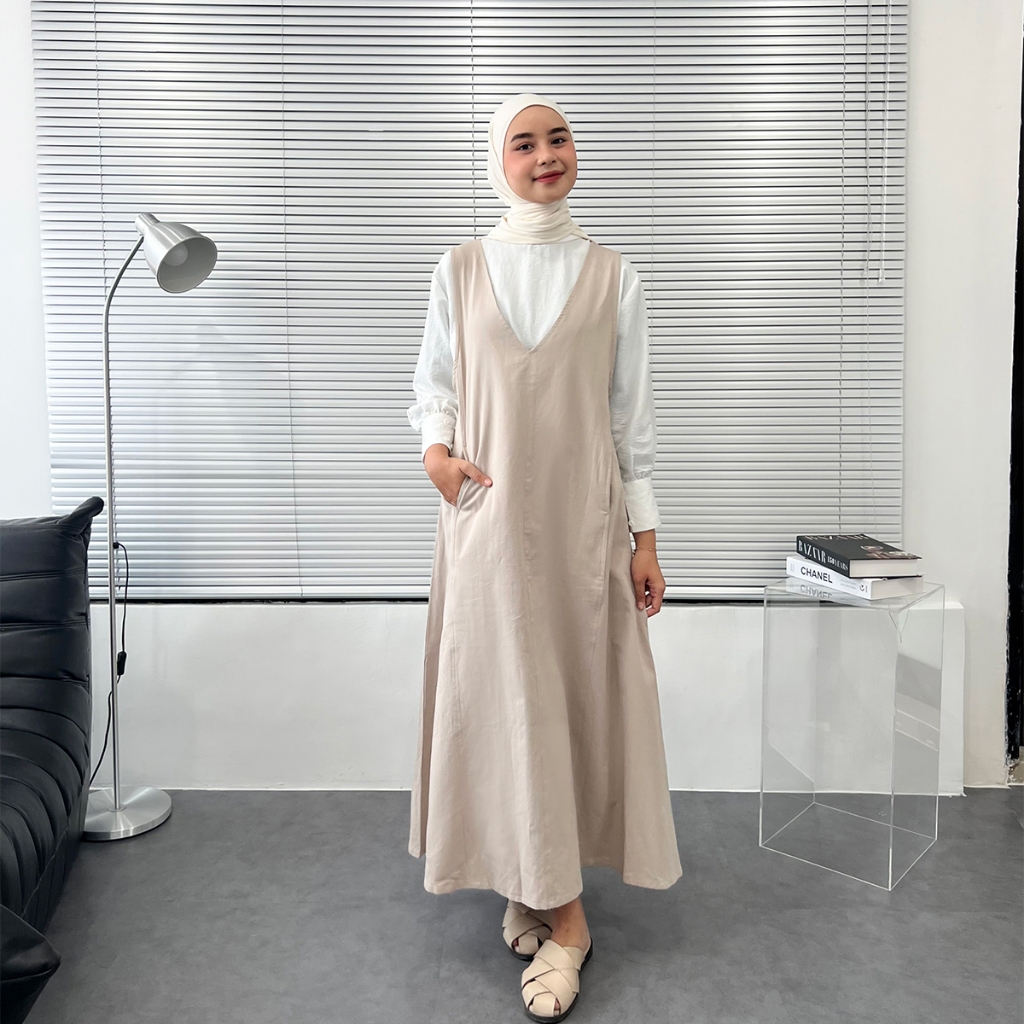 YEPPUOUTFIT - Hyewon Overall | Basic Long Dress Simple V Line Tanpa Lengan Bahan Linen Twill