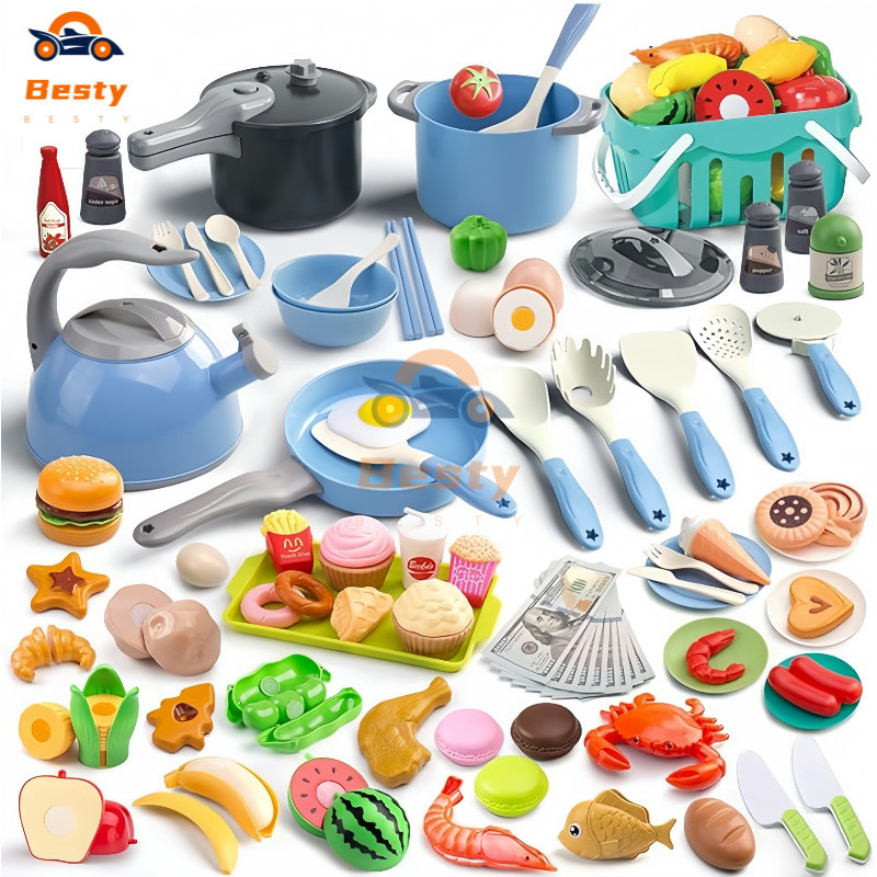 Besty 86Pcs Mainan Dapur Simulasi Mainan Mak Dapur Mainan Buah Potong Dapur Mainan Pendidikan Anak Memotong Sayuran