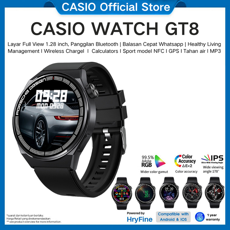 Casio SmartWatch GT8,Panggilan suara, tampilan jam khusus, MP4, pemantauan detak jantung, tali yang dapat disesuaikan