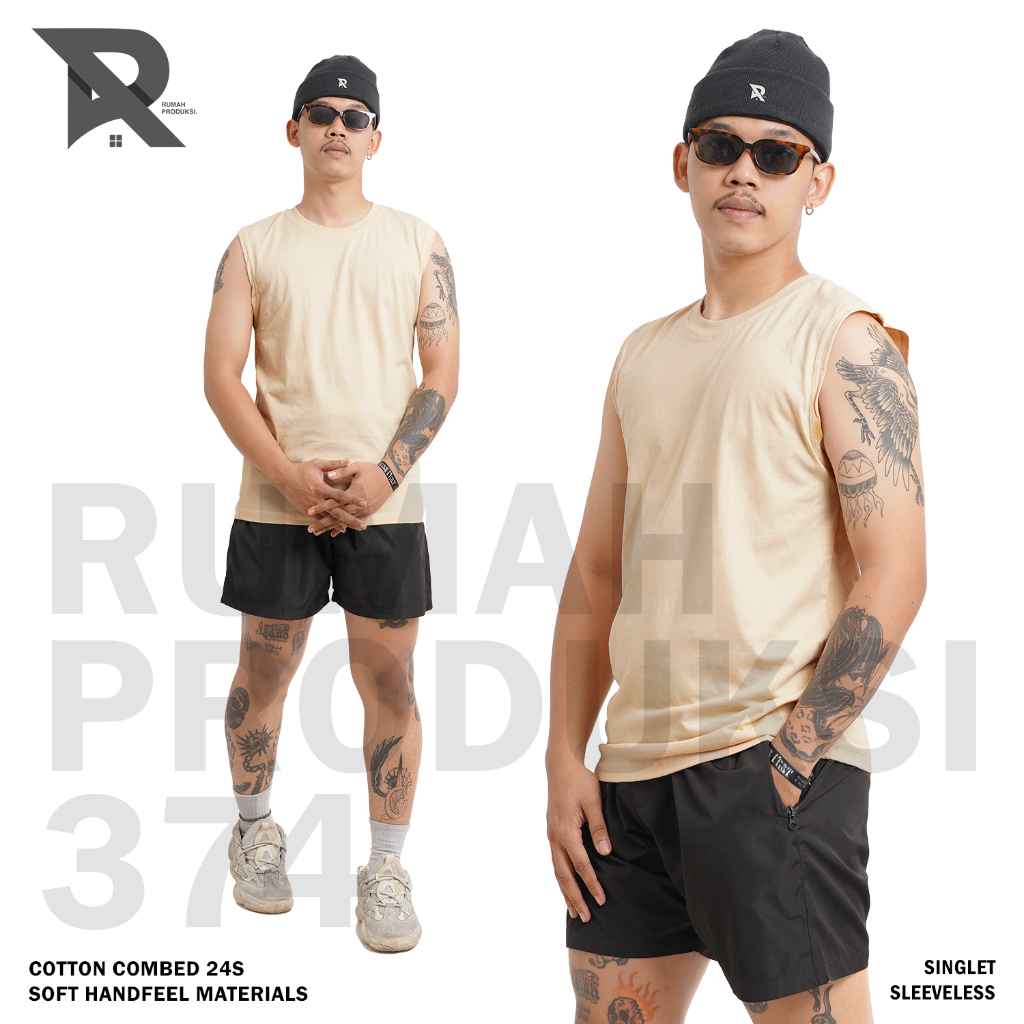 KAOS BAJU SINGLET BASIC SLEEVELESS POLOS LEKBONG BAJU KETEK T-SHIRT TANPA LENGAN ABU-ABU DUSTY PINK KREM CREAM PRIA KATUN WANITA DEWASA COMBED 24S