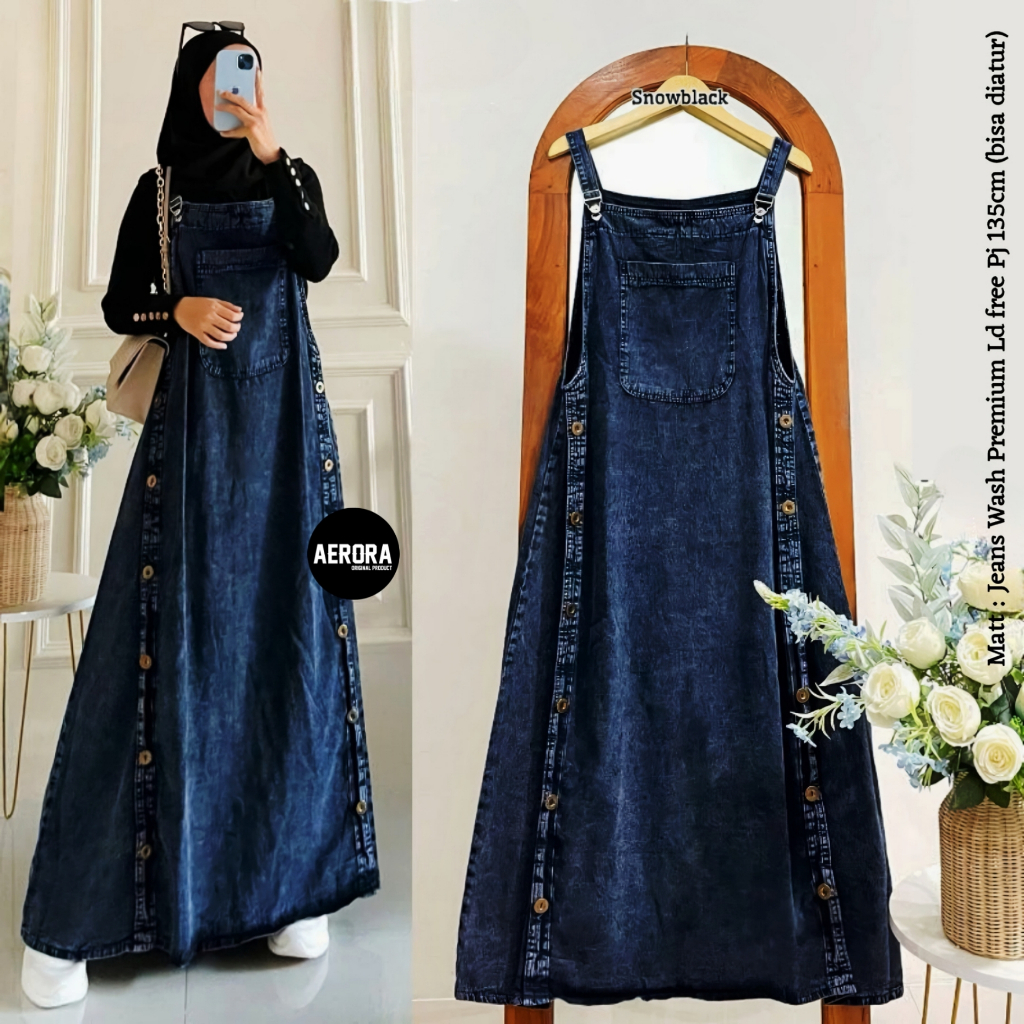 Aerora Baju Kodok Jesina Overall Dress Rok Jeans Wanita Jumbo Bigsize Terbaru Korean Style 2025