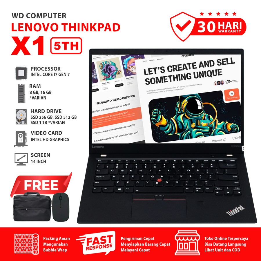 [Mall] Laptop / Leptop Lenovo X1 Carbon 5th Intel Core I7 Gen 7 I Ram 8 Gb Ssd 1 Tb Nvme I Windows 10 I Bonus Mouse Tas