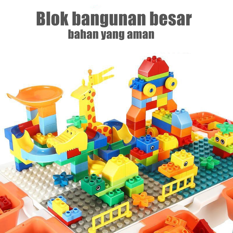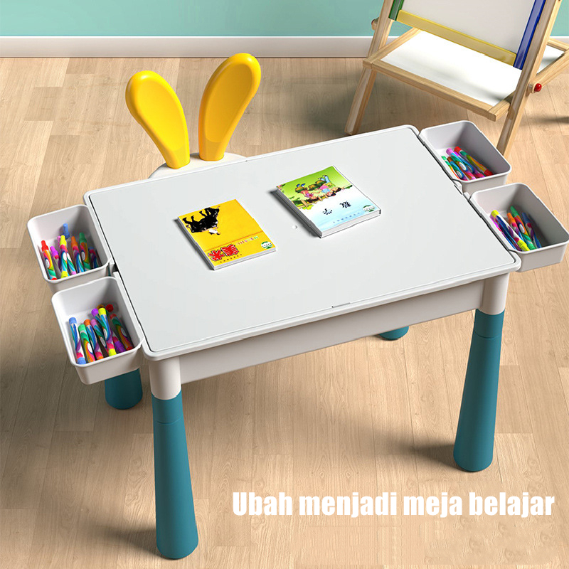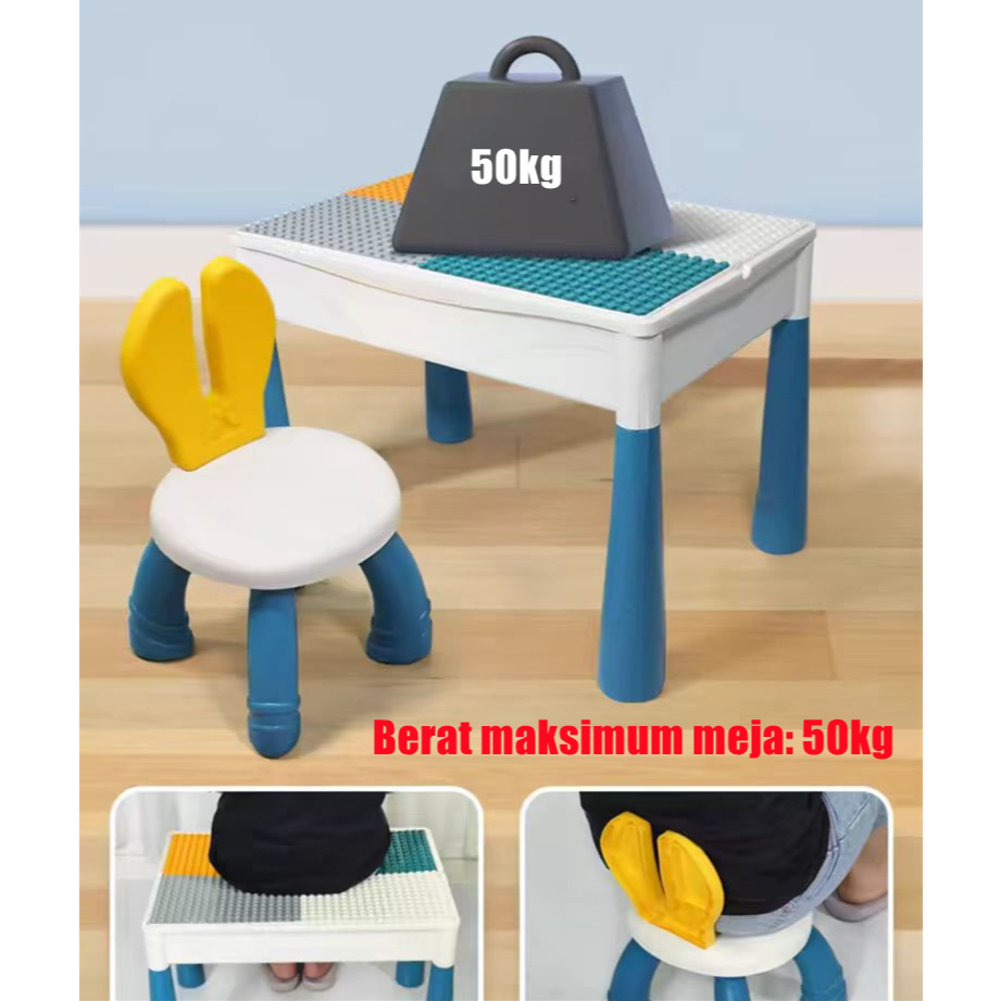 MEJA BELAJAR ANAK BUILDING BLOCK TABLE SET BLOK BANGUNAN BESAR RAKITAN PARTIKEL TERLARIS