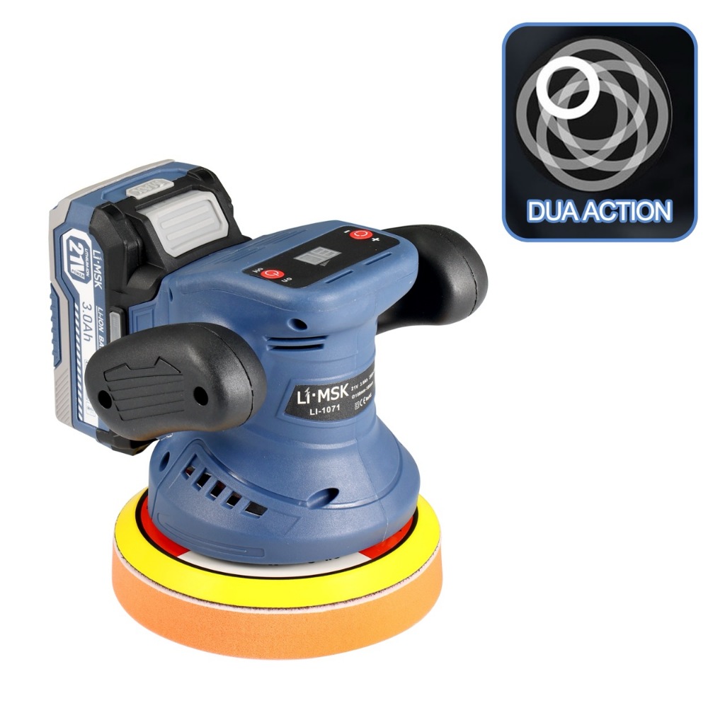 LIMSK Mesin Poles Baterai 21V LI 1071 Dual Action Tekan Chassis 150mm Tanpa Kabel Untuk Mobil Kayu Logam Kaca Profesiona