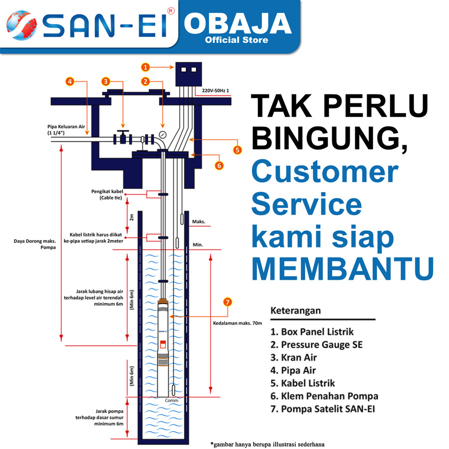 San Ei Pompa Satelit 3 inch 0.75 HP San Ei Noril/ Pompa Submersible 3" 0.75 HP San Ei Impeller Plastik
