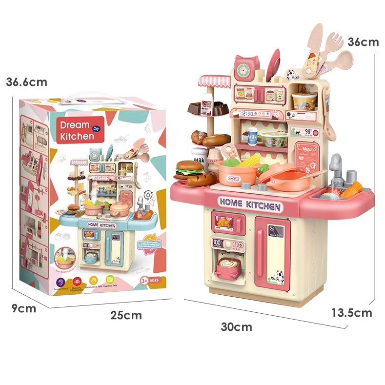 Mainan Edukasi Anak BIG HOME KITCHEN Set 36T House Kitchen Cook Set dengan Lampu dan Mist Masak masakan