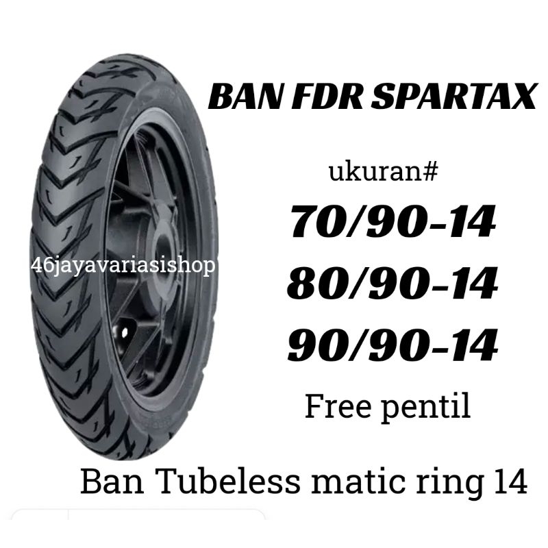 BAN LUAR TUBELESS FDR SPARTAX RING 14 UKURAN 70/90-14&80/90-14&90/90-14 FREE PENTIL BAN TUBLES MATIC FDR 70 90 14 80 90