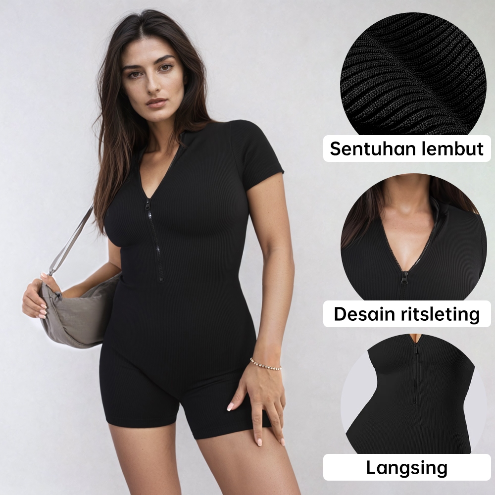 AKLOVER Kaos Jumpsuit Wanita Fit Naked Legging Jumpsuit Wanita Lengan Pendek Setelan Olahraga