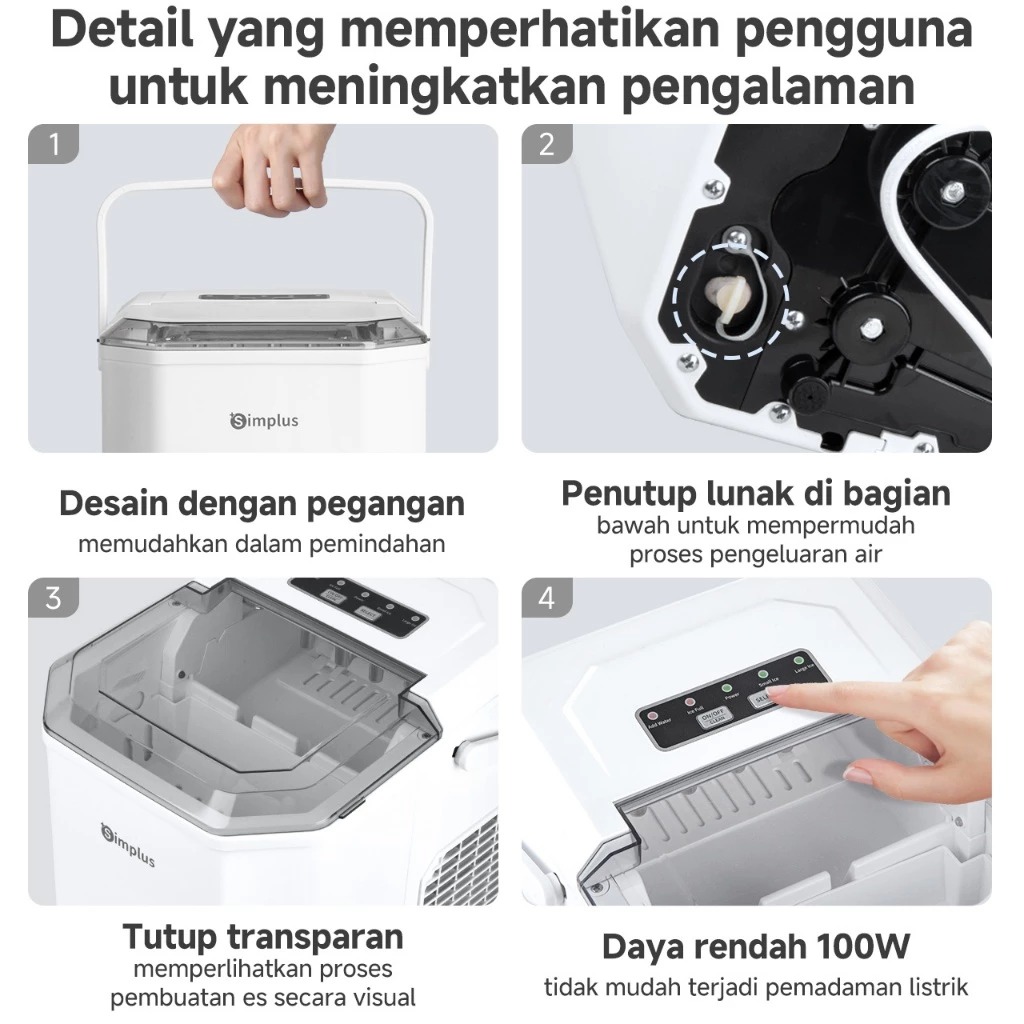 Ice Maker Household 12kg Water Tank Compact Design Low Power Automatic Ice Production