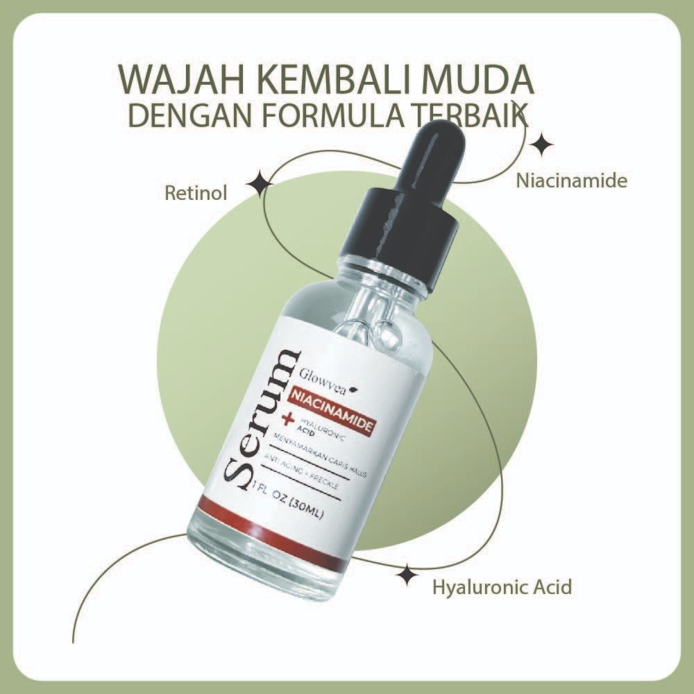 1 Pcs Glowvea Serum Wajah Glowing 30ml Untuk Perawatan Kerutan, Jerawat, Flek Hitam, Kulit Kering Aging Mengencangkan Me