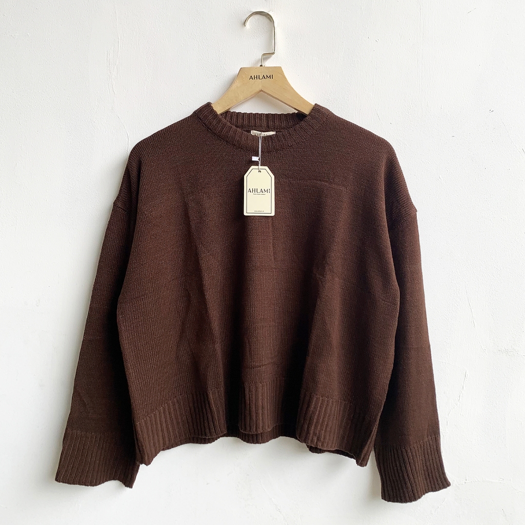 Ahlami- Noura Basic Crop Top Oversize Crop Top Rajut Sweatshirt Crop Oversize Panjang Lengan Sweater Oversize
