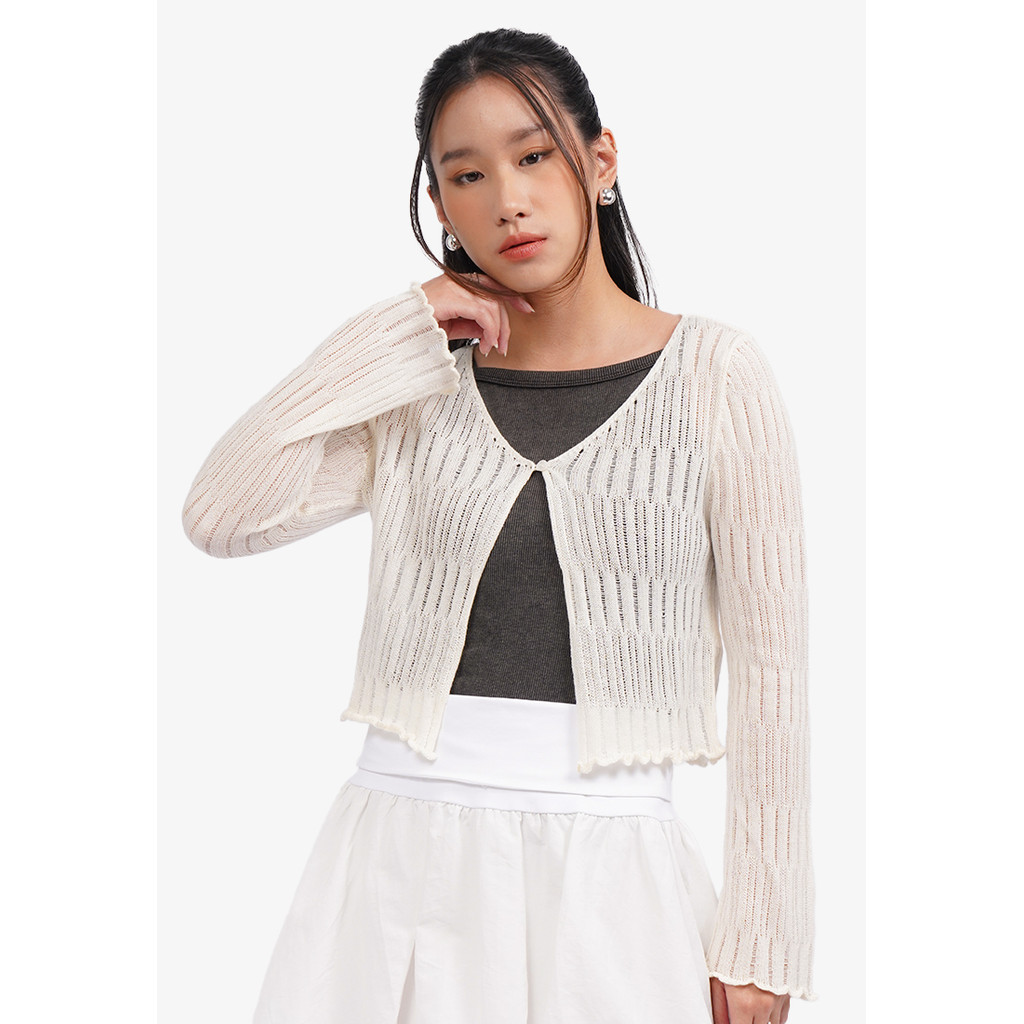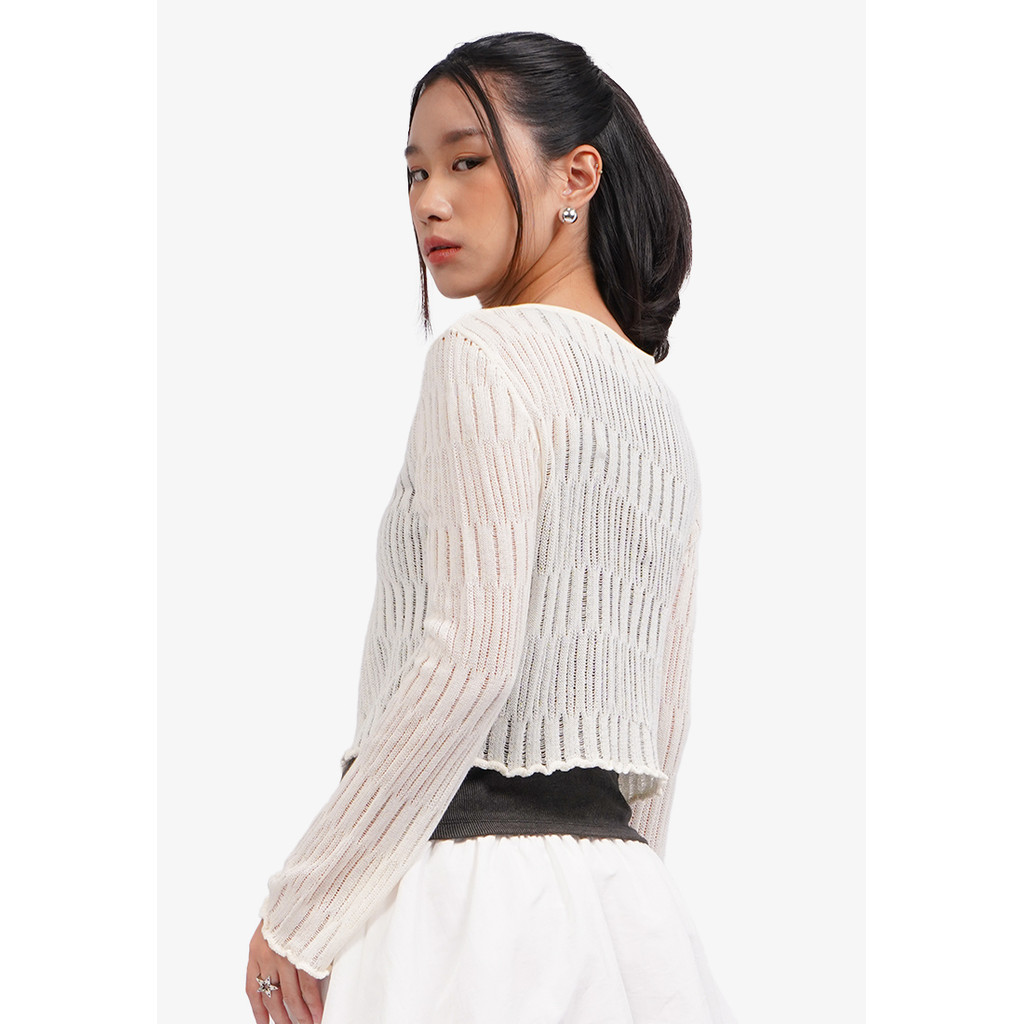 COLORBOX Open Work Long Sleeve Cardigan Off White