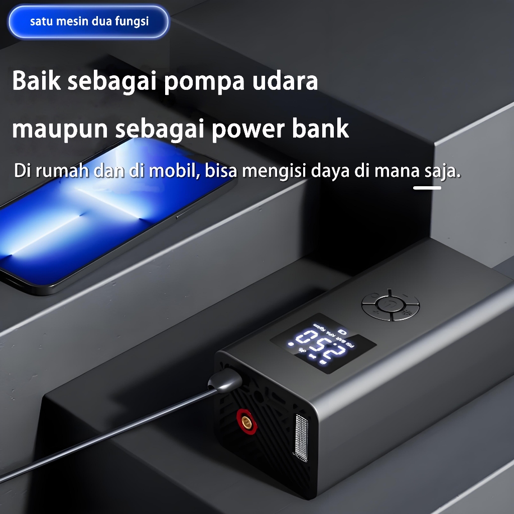 Sekejap penuh! YURUI Pompa ban listrik Dilengkapi lampu penerangan Layar LCD digital Tampilan tekanan ban Pompa udara mo
