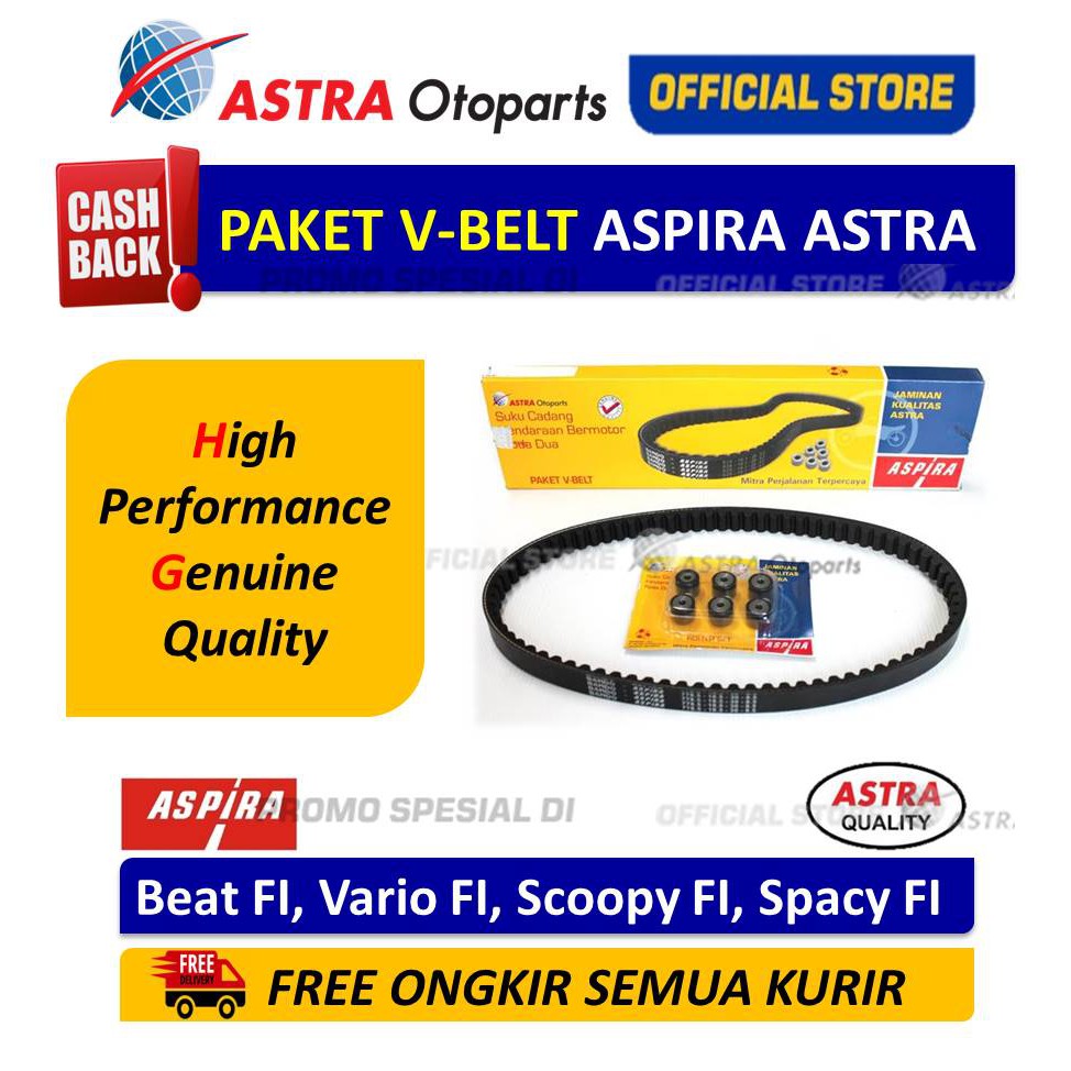 Paket V-Belt Aspira ASTRA (V-Belt Kit) untuk motor BEAT FI, VARIO FI, SCOOPY FI, SPACY FI