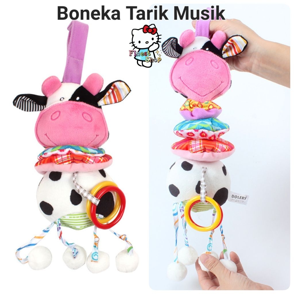 Mainan Boneka Gantung Stroller Mainan Bayi 0 3 6 9 12 Bulan Mainan Musik Tarik Landak Ikan Burung Sapi Musical Plush Toy