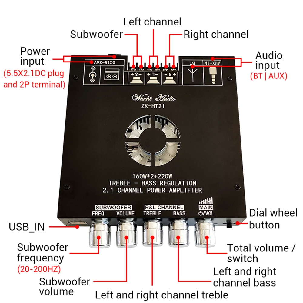Zk-Ht21 Mini Amplifier Board 2.1 Channel Digital Amplifier Module With Subwoofer Tda7498E Stereo