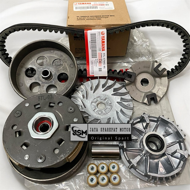 PAKET CVT LENGKAP MIO SPORTY/SMILE/SOUL KARBU 5TL (VANBELT+RUMAH ROLLER SET+KIPAS+PULLY ASSY)
