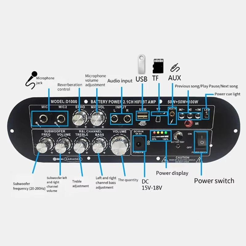 Amplifier High-Power Subwoofer Bt Bluetooth 5.0 D1000 D900 D800 Digital Amplifier Board 2.1 Channe