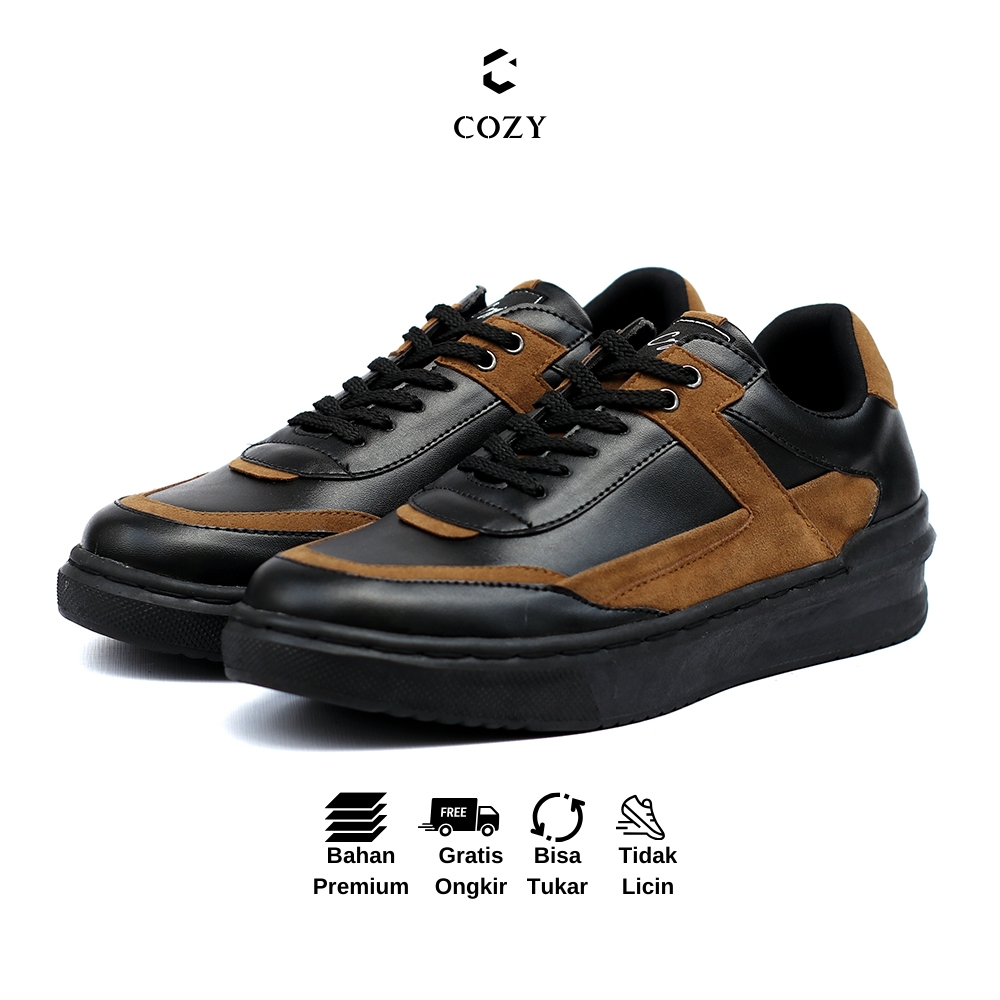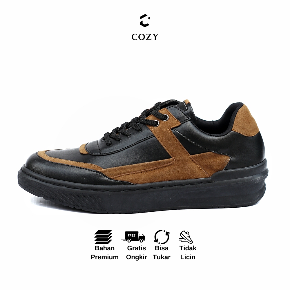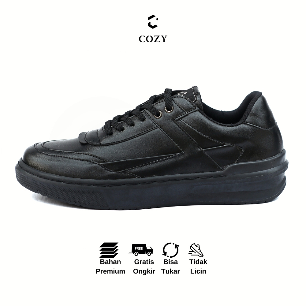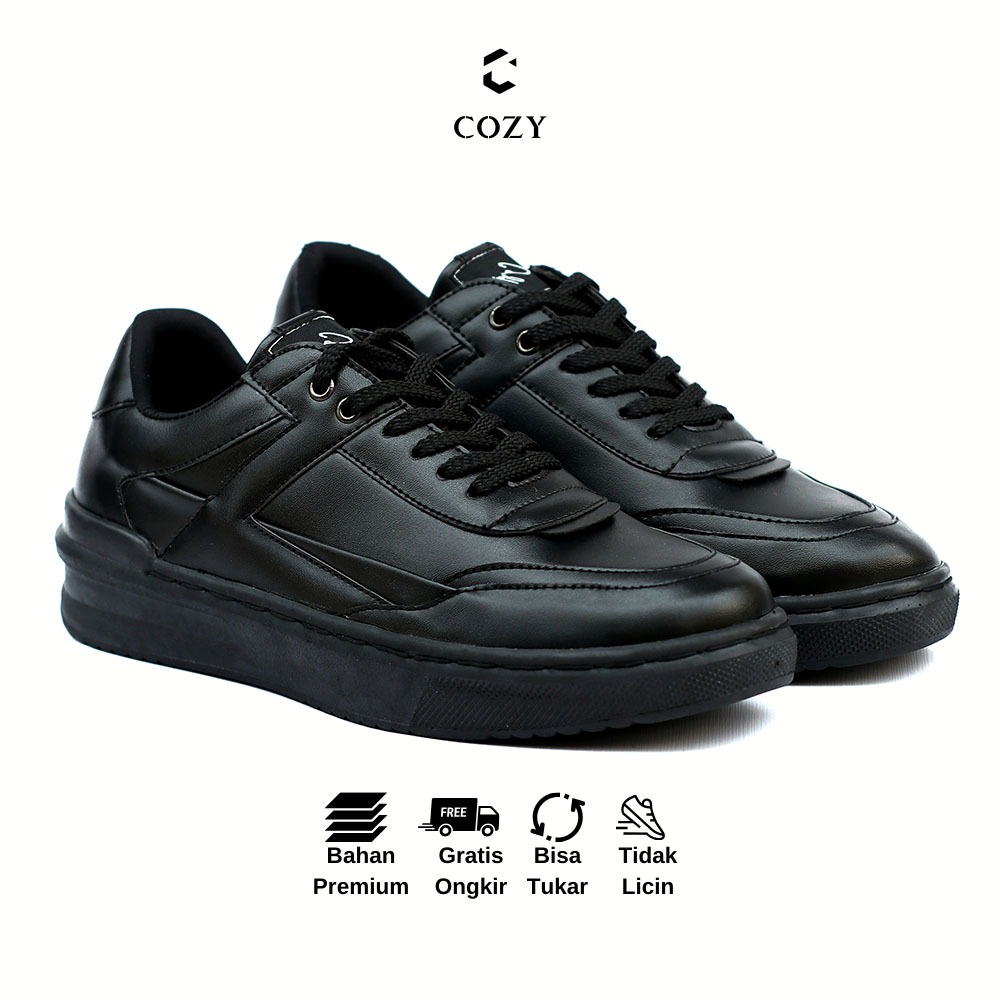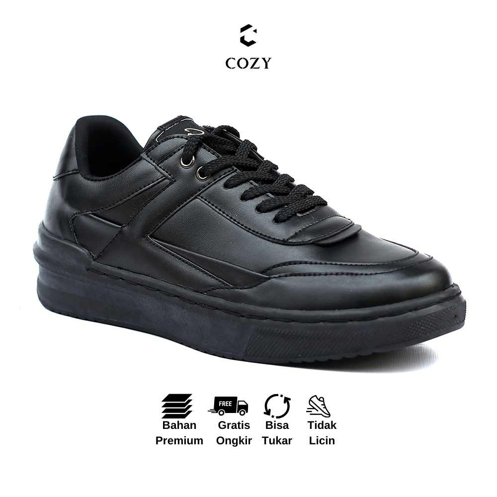 CZY Sevill Black Sepatu Casual Formal Pria Hitam Pantofel Kerja Kantor Kuliah Sekolah