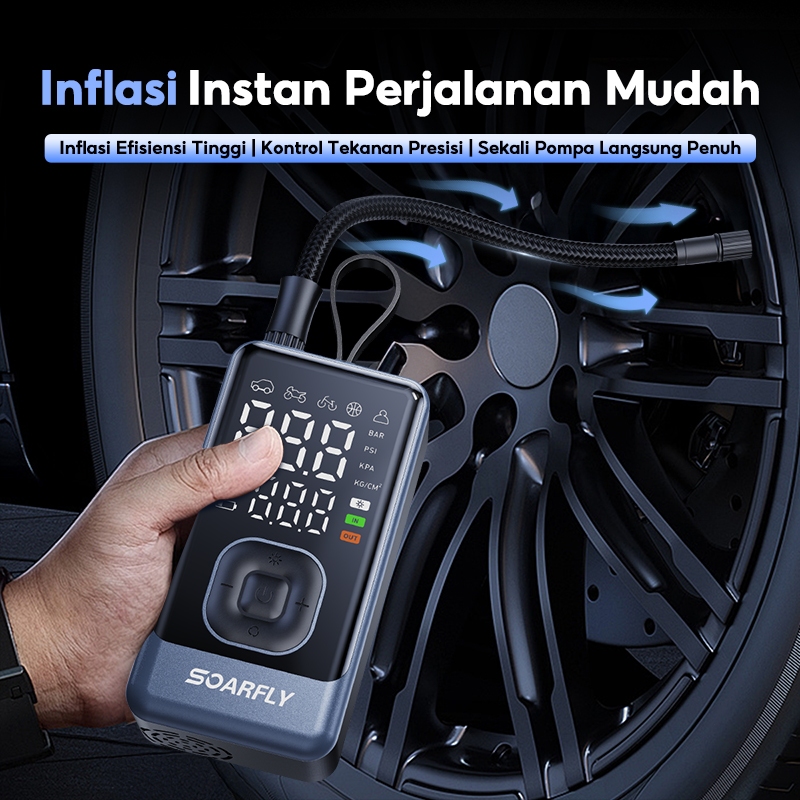 [] SOARFLY Car Air Pump Tire Inflator Portable Pompa Ban Mobil dan Motor Mini Pompa Angin Elektrik 8000mAh