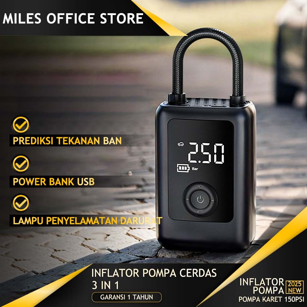 Pompa Ban Mobil Elektrik Portable Dilengkapi PowerBank 6000mAh Dan Lampu LED Pompa Angin Ban Motor 150PSl
