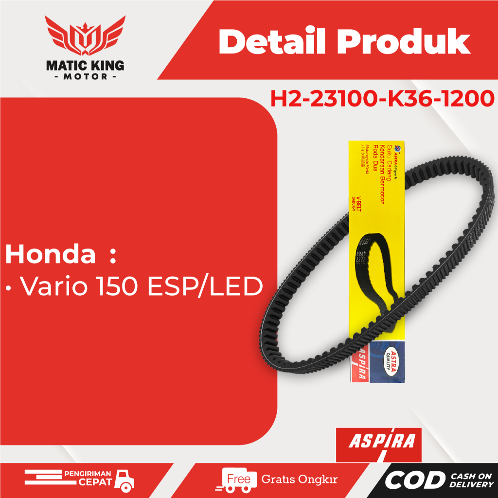 Aspira Vanbelt V belt Fanbelt Vario 150 eSP Old New Led Astra Otoparts H2-23100-K36-1200