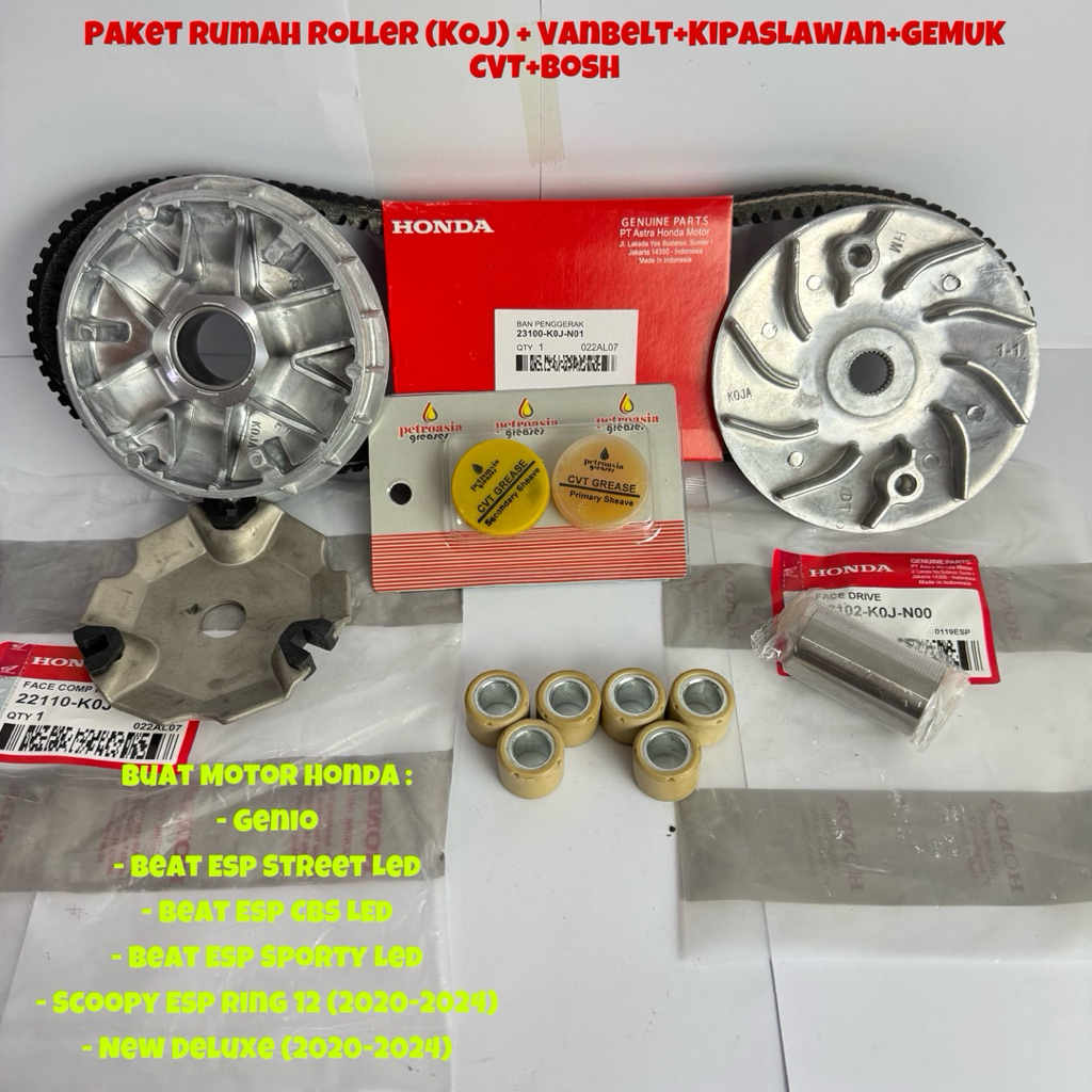Paket Rumah Roller (KOJ)+Bonus Gemuk CVT+Vanbelt+KipasLawan Buat Semua Motor Baru New Beat Deluxe, Beat Street, All New