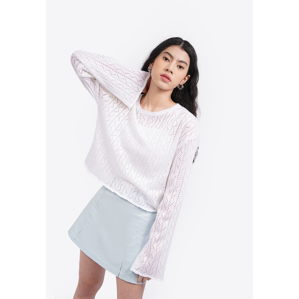 COLORBOX Long Sleeve Textured Sweater Off White