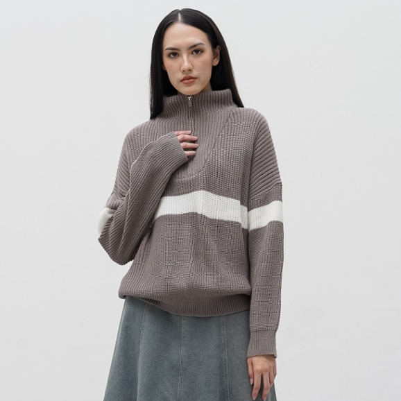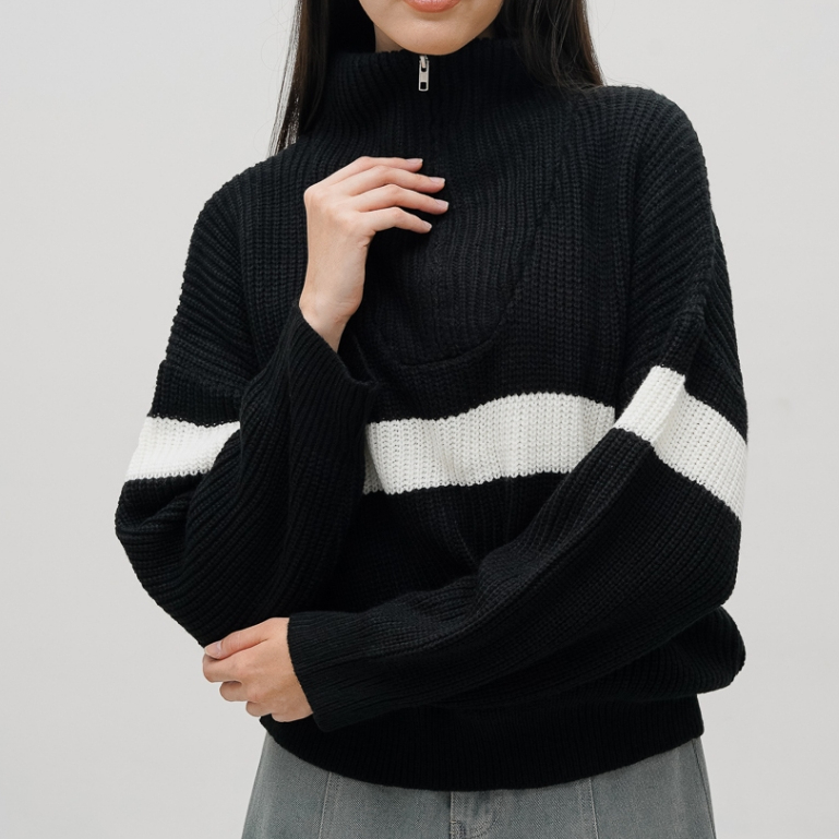 This Is April Sweater Knit Atasan Wanita Oversized Lengan Panjang Casual Emilina Sweater Black dan Brown