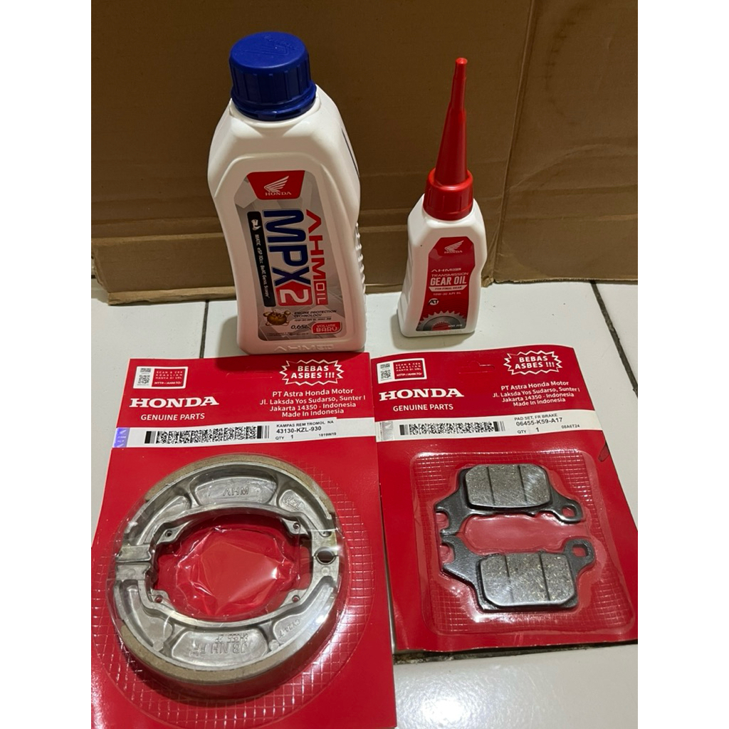 PAKET HEMAT OLI MPX2 0,65 DAN AHM GEAR + KAMPAS REM DEPAN + KAMPAS REM BELAKANG MOTOR HONDA METIK BEAT DELUX BEAT NEW SC