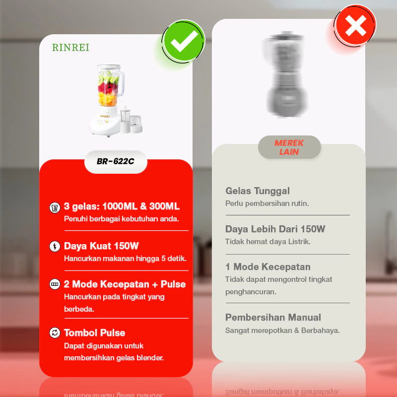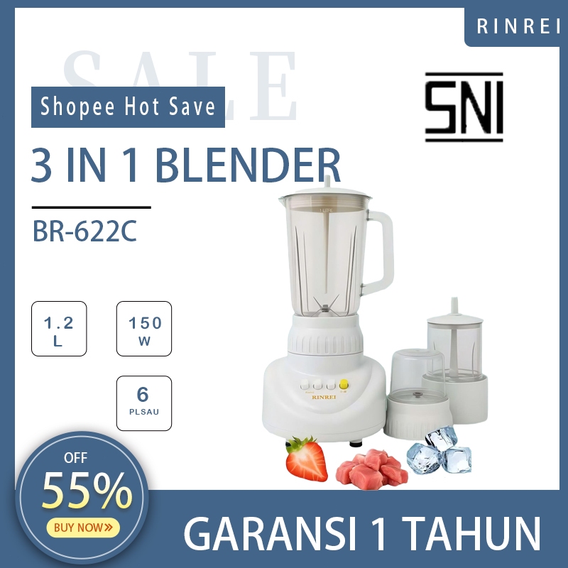 Terlaku Blender Rinrei 3in1 - Mixer, Juicer, Penghancur Es, Kecepatan Tinggi, Anti Bocor