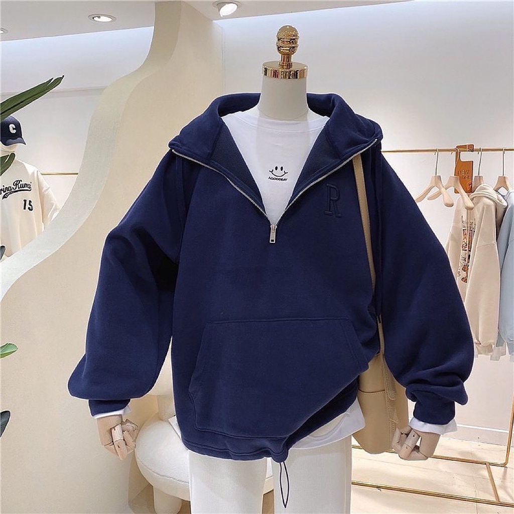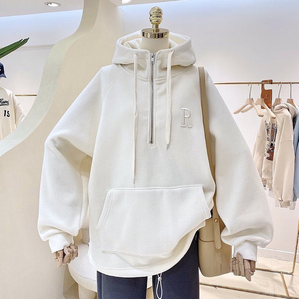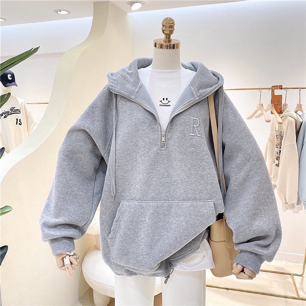 Vallina - R Bordier Half Zipper Sweater Hoodie Oversized Outerwear Remaja Wanita Korean Style Premium