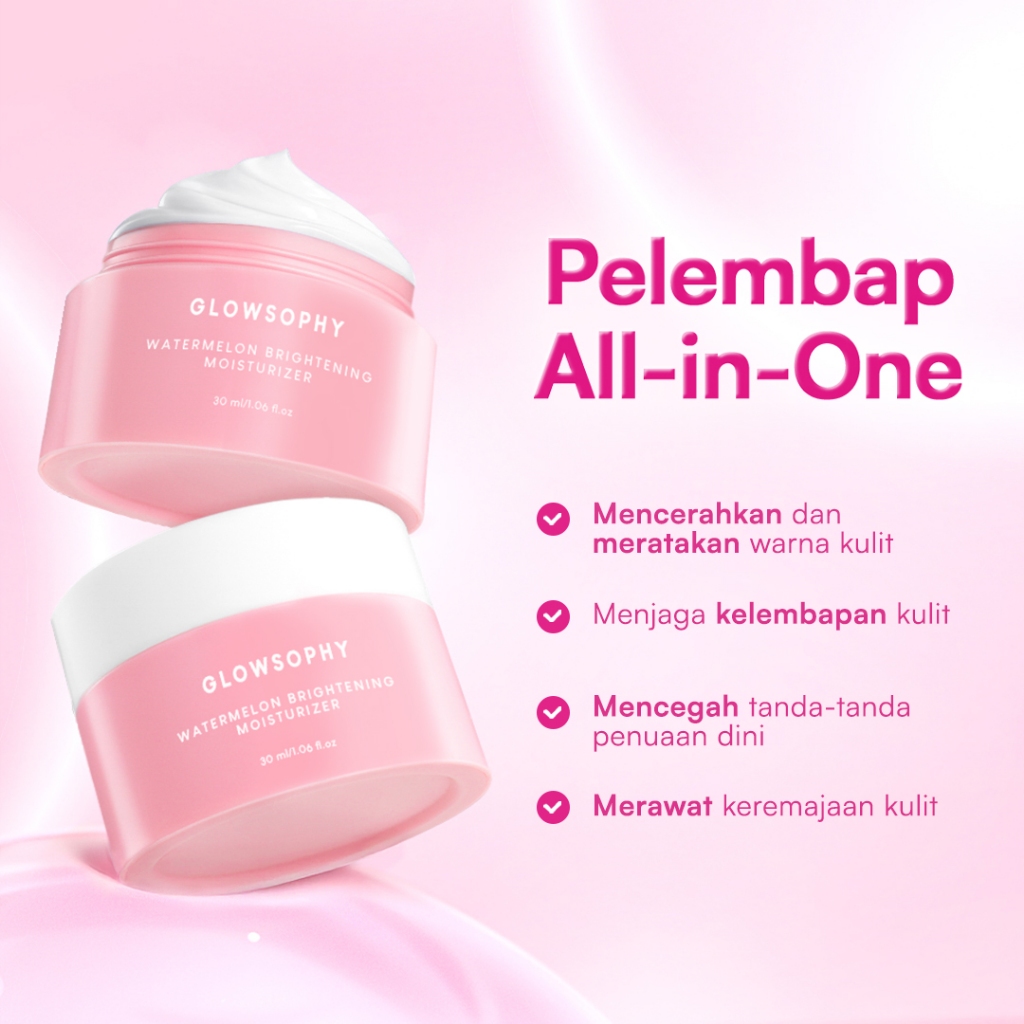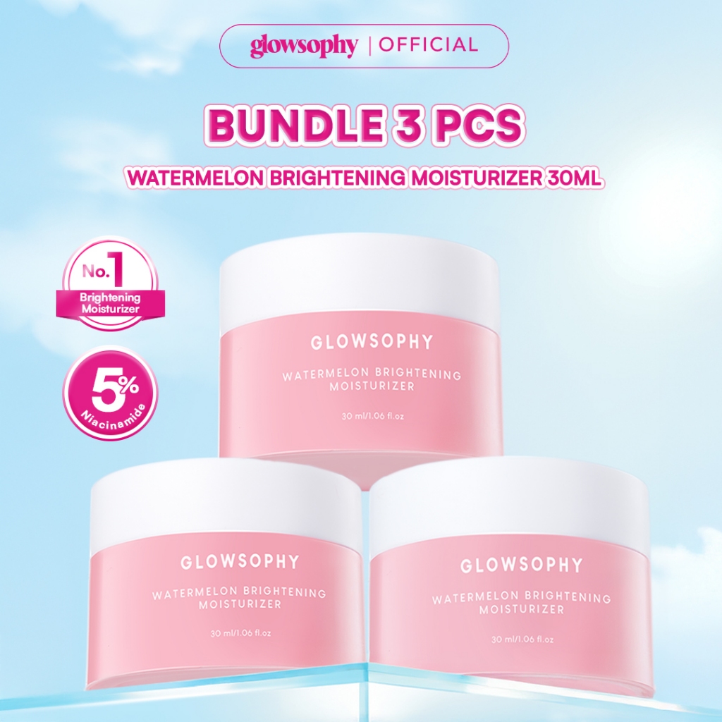 Glowsophy Bundle 3 Pcs Watermelon Brightening Moisturizer Niacinamide Mugwort Gel Day and Night Skincare 30 ml