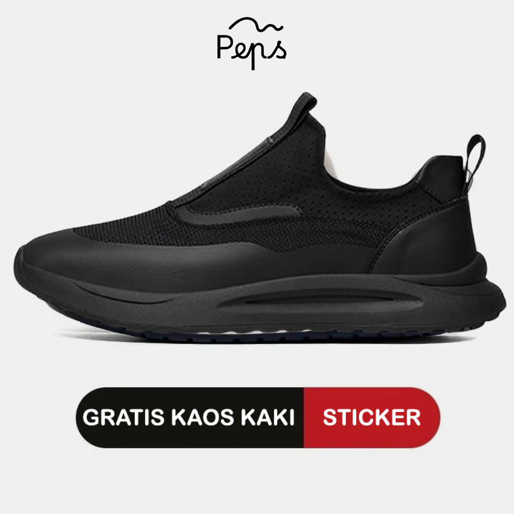 [Mall] Sneakers Pria Olahraga Running Sport Anti Slip Murah – Slip On Black