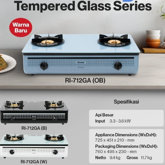 KOMPOR GAS RINNAI 2 TUNGKU 712 GA API LILIN TOP PLATE PAN ANTI SLIP TEMPERED GLASS BY SCHOTT GLASS