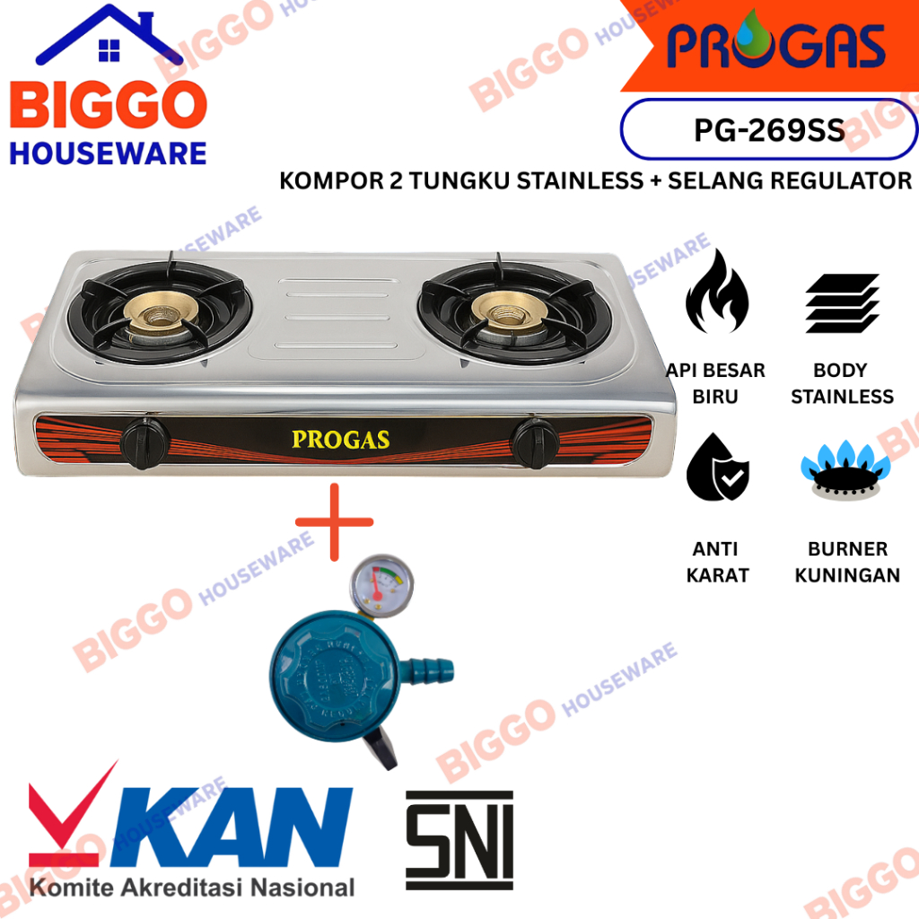 PROGAS Kompor Gas 2 Tungku Stainless Steel PG-269 Api Biru Kualitas Premium