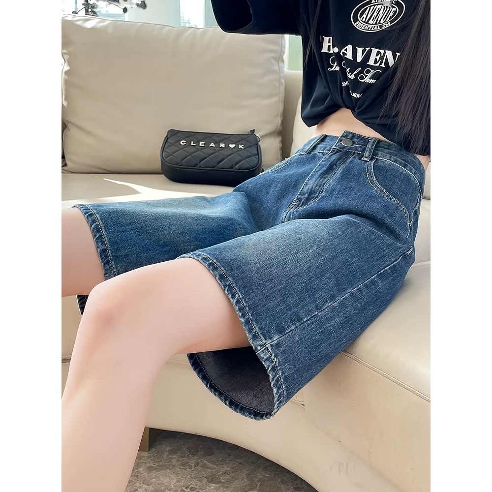 (ʀᴇᴀᴅʏ) Short Jeans Retro Blue Celana Jeans Pendek Wanita 3/4 jumbo size highwaist hotpans jins