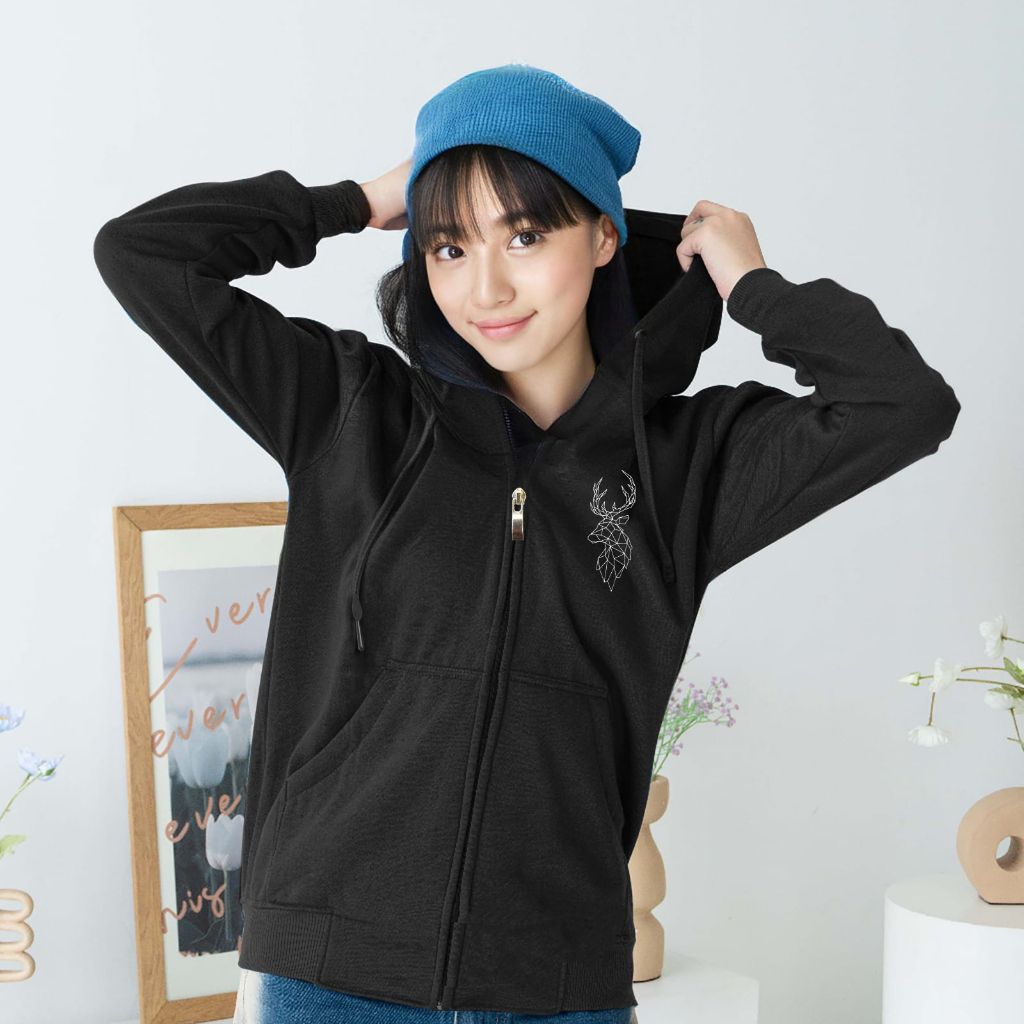 Harvional Hoodie Zipper Deer (Bordir) Size S - XXL ( Pria & Wanita )