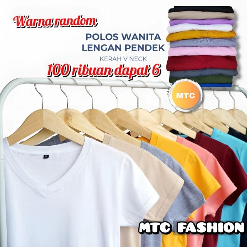 Paket Usaha Isi 6pcs. Kaos Polos Atasan Wanita Remaja Leher V-Neck. Baju Slim-fitting