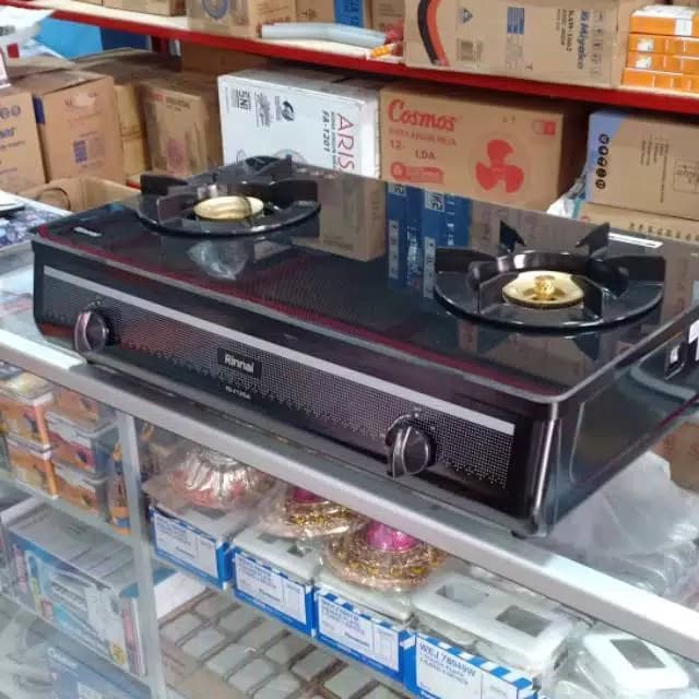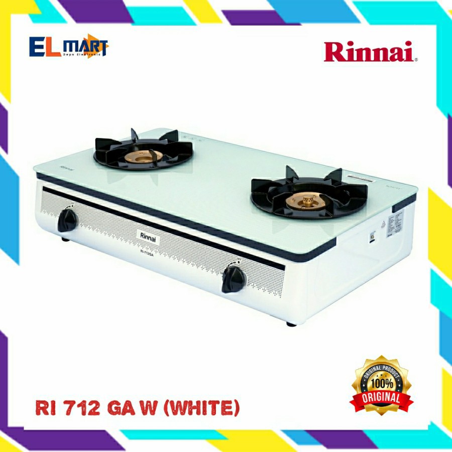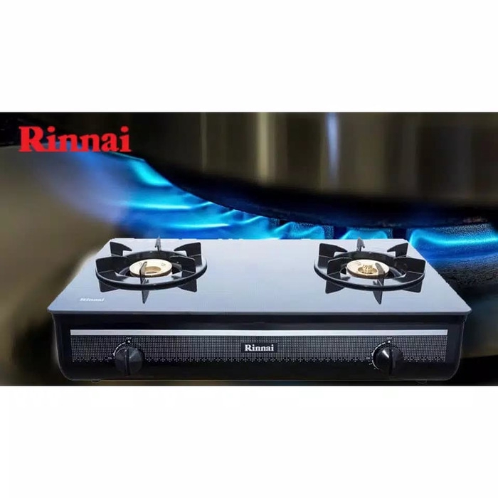 Kompor Gas RINNAI Kaca 2 tungku Schott RI 712 GA - 712GA B W api lilin RI712GA Black White