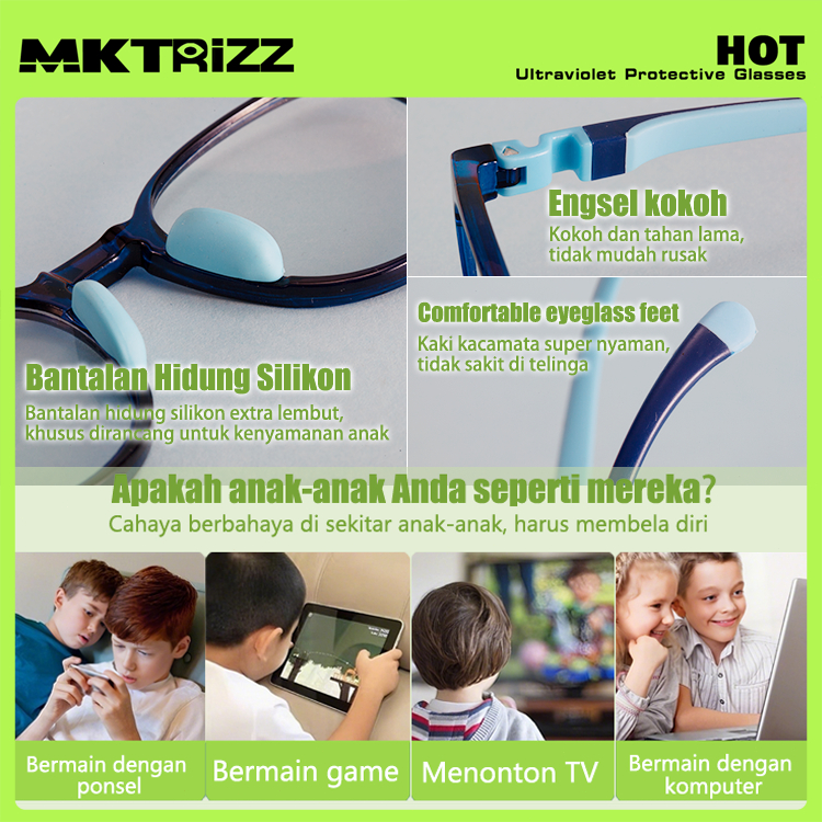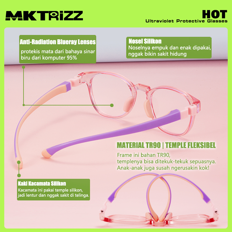 MKTRIZZ Kacamata Anti Radiasi Anak Photochromic Kacamata Minus Normal Silikon Perempuan Laki Laki