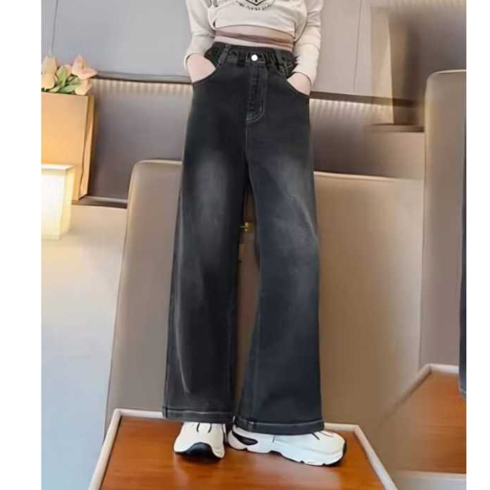celana jeans Celana Jeans Anak Perempuan Kulot Skena Gombrong Usia 3 Tahun sampai Remaja Warna Light Snow Sprey hitam Sn