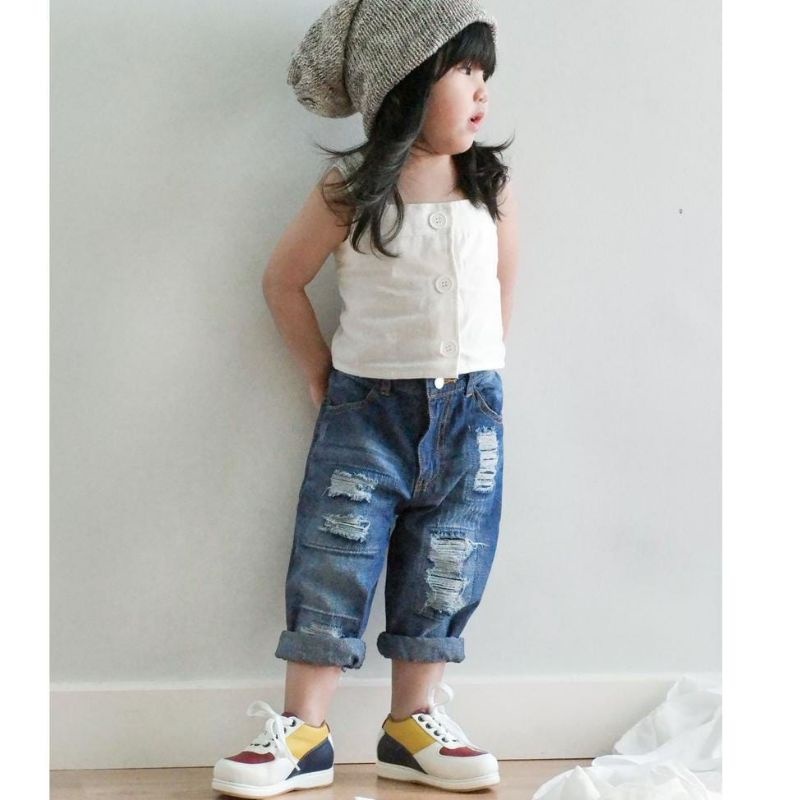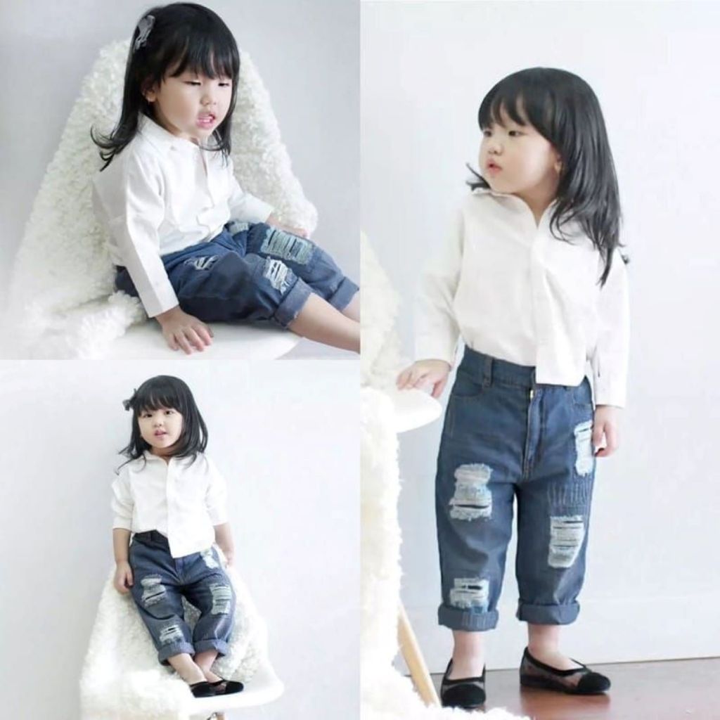 celana jeans Celana Jeans Anak Perempuan Ripped Sobek Denim Premium