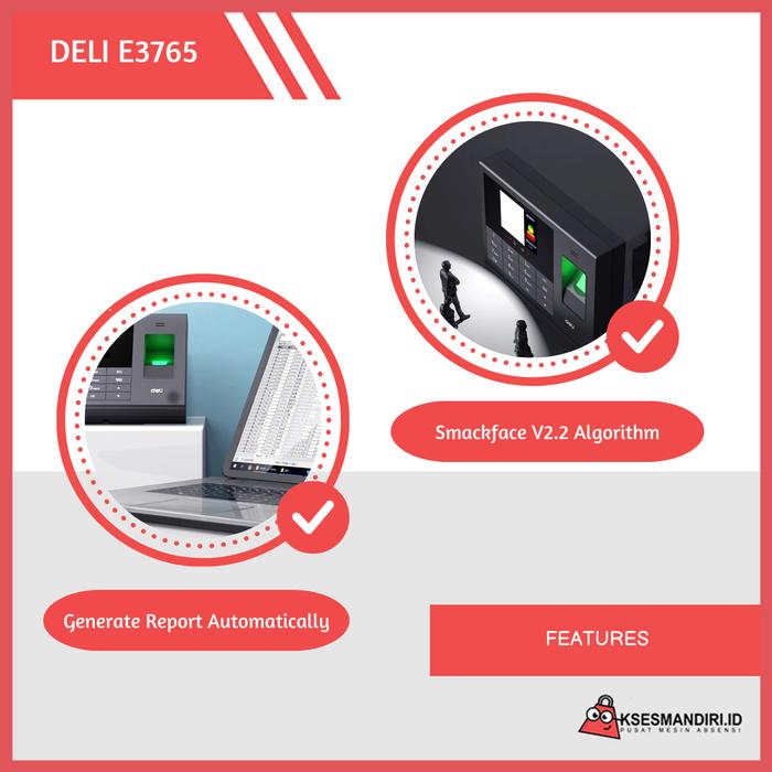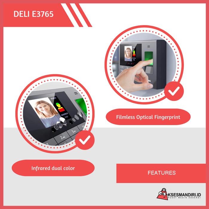 PROMO MESIN ABSENSI FINGERPRINT SENSOR WAJAH DELI E3765 KAPASITAS SIDIK JARI 1000 DAN REKAM 100000