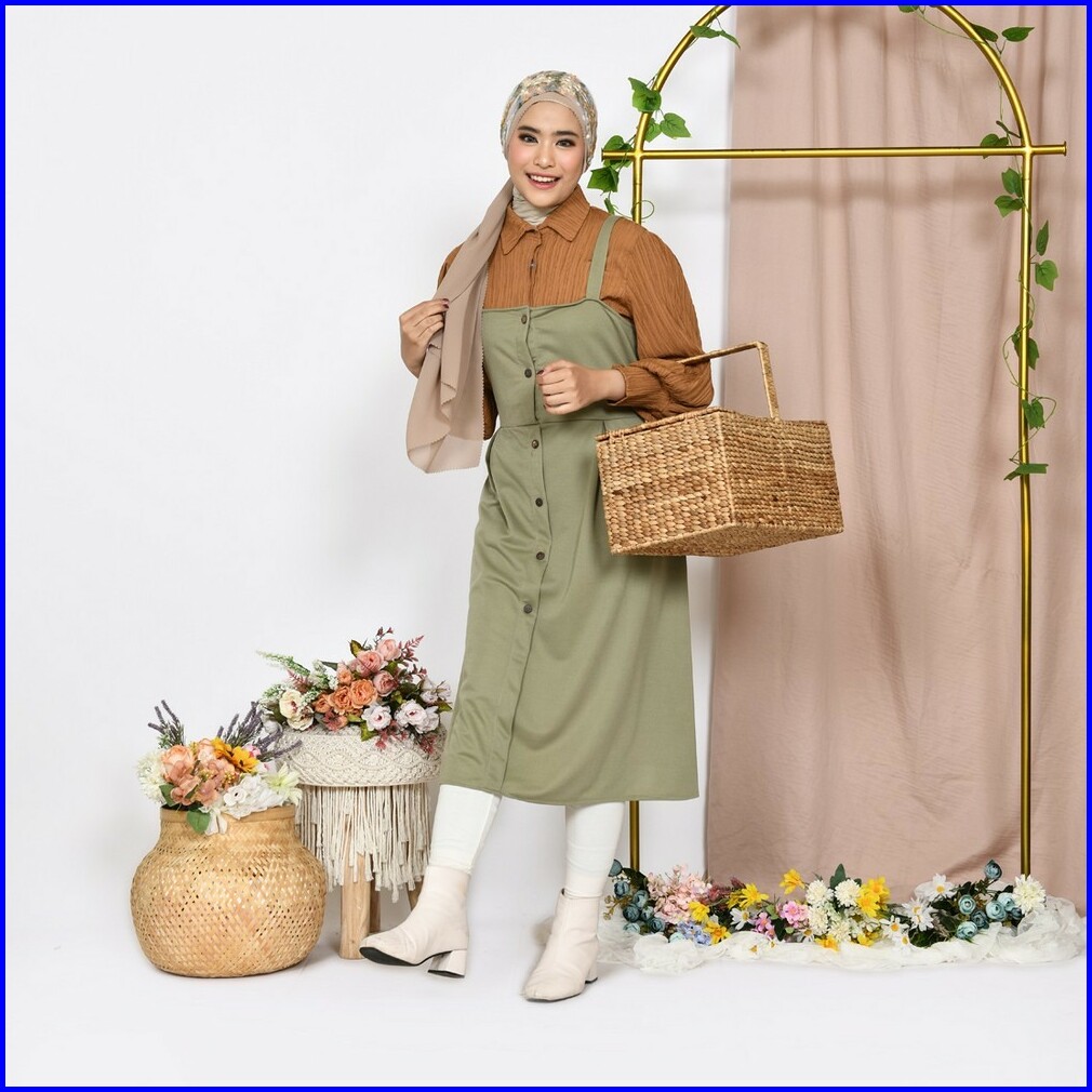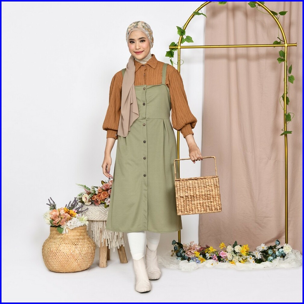 Mybamus Tikafisi Overall Midi Dress - Jumpsuit Rok - Jumpsuit Kekinian - Overall Tunik