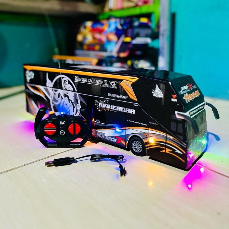 Miniatur bus telolet basuri remot control,mainan mobil bus telolet lengkap aksesoris lampu